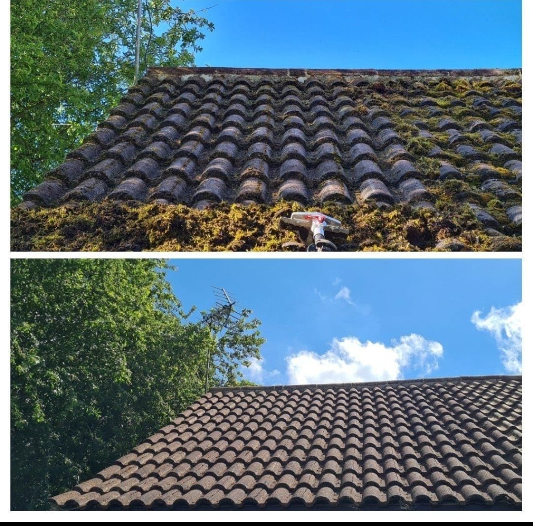 Nos prestations comprennent également le démoussage, l’application de traitements hydrofuges et antifongiques afin de protéger durablement la couverture contre les mousses, lichens et infiltrations.